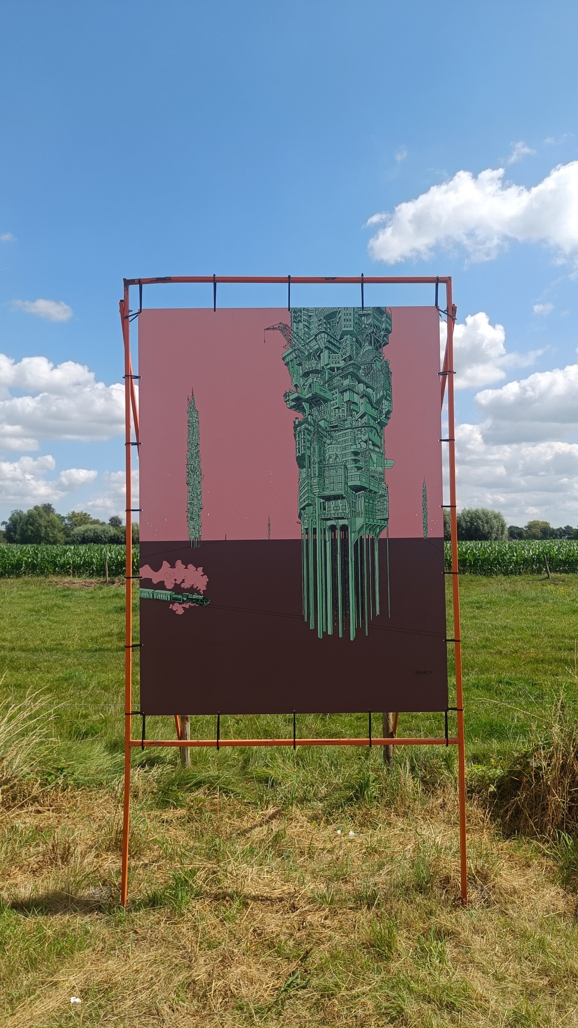 Kunst langs de voormalige spoorlijn, met een knipoog naar het verleden.
