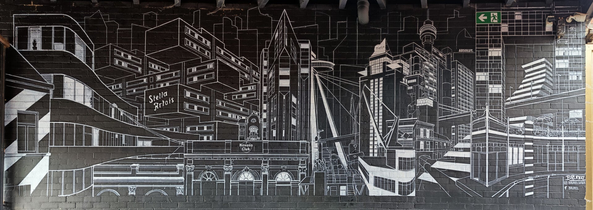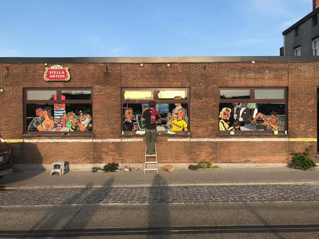Bar Oswald spreidt z'n vleugels naar Brugge. Tijdens de verbouwingswerken aan het interieur werden de ramen bedekt met een voorsmaakje wat het nieuwe café te bieden zou hebben. 't Is ondertussen open, 't Zand 3 in Brugge!